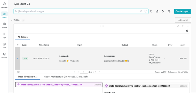 Use just 2 lines of code, to instantly log your responses across all providers with Weights & Biases